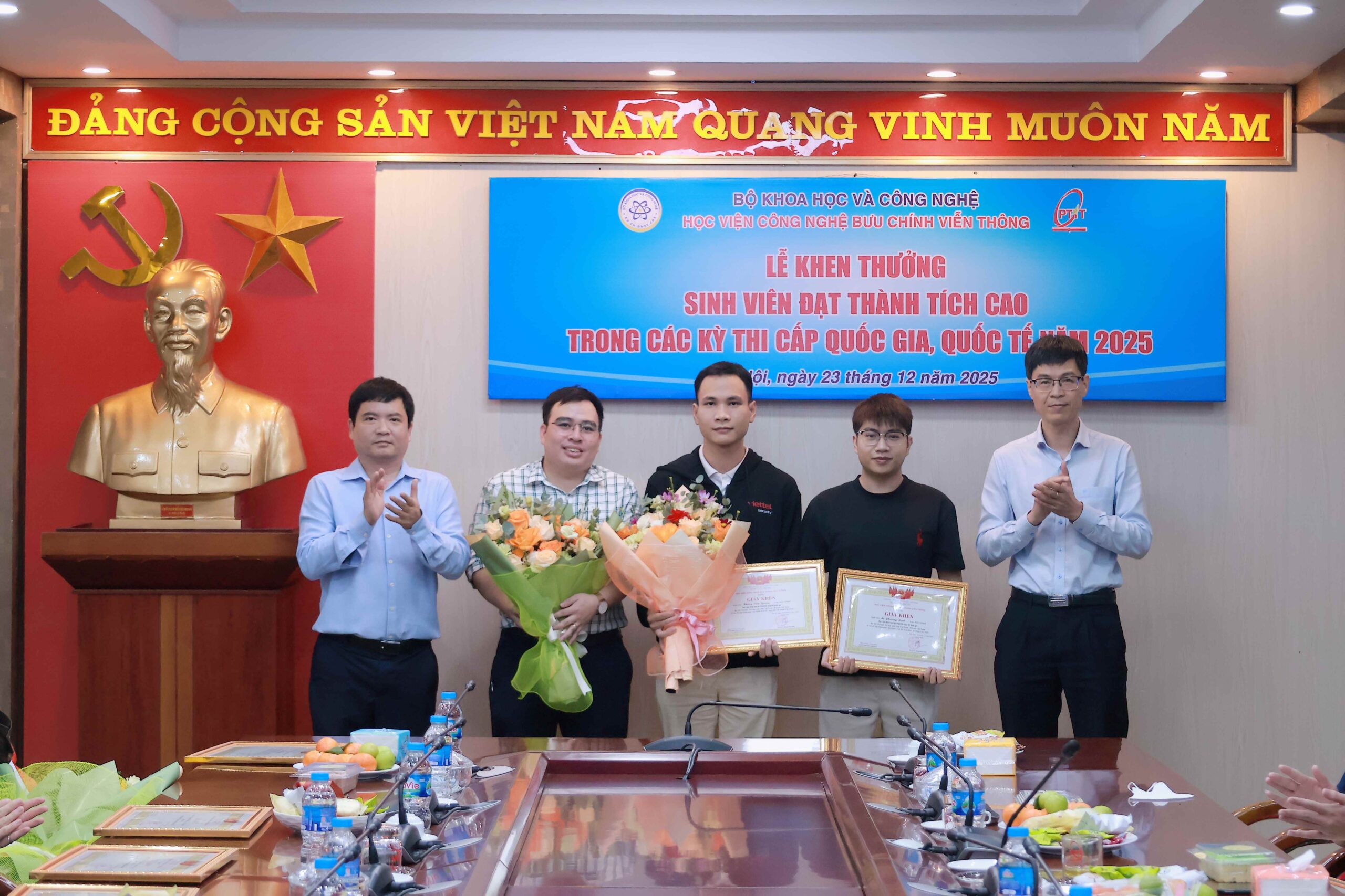 Ngày 23/12/2025, tại Hà Nội, Học viện Công nghệ Bưu chính Viễn thông (PTIT) đã tổ chức lễ khen thưởng các sinh viên đạt thành tích cao trong các kỳ thi cấp Quốc gia, Quốc tế năm 2025.